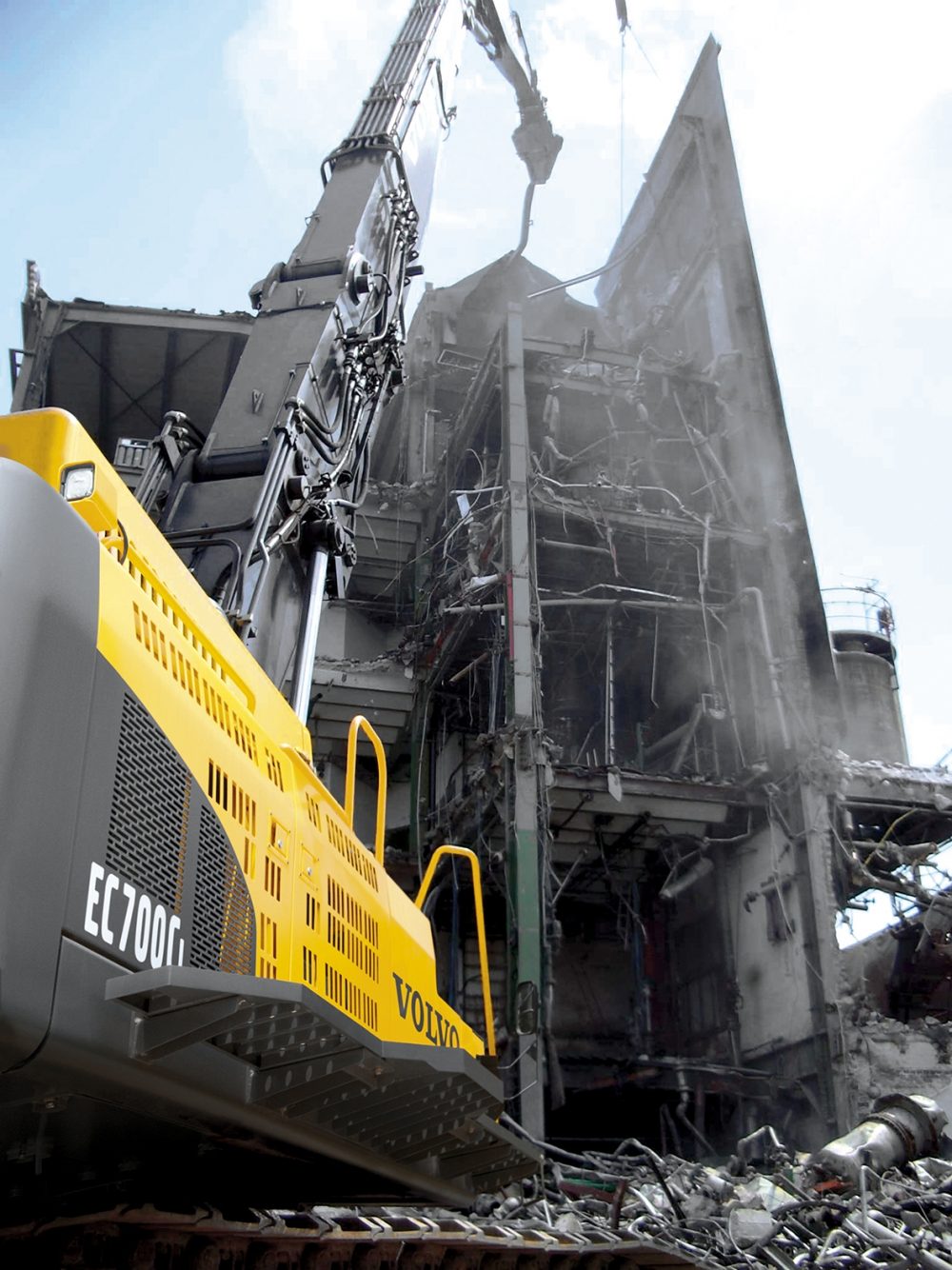 To provide the most versatile machine possible on demolition job sites, EC700CHR reaches a lofty 32m but it can also be fitted with both high-reach equipment and a standard boom-and-arm.
