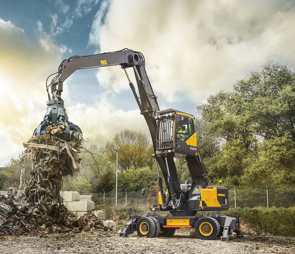 It’s not only its wheels that makes this excavator special. Designed for the waste and recycling industries, the new EW240E material handler weighs in at 26 tonnes, and with its 6.5m straight boom and 5m gooseneck arm, the machine has an impressive forward reach of more than 11m.